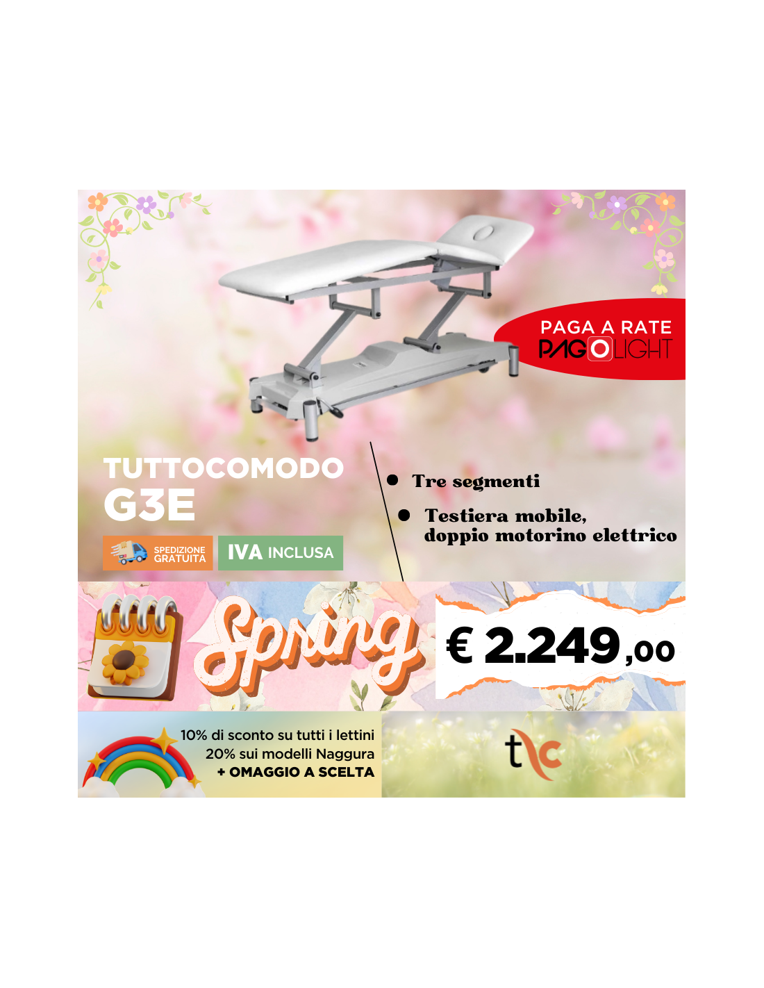 Lettino elettrico Tuttocomodo G3E: tre segmenti e due motorini elettrici