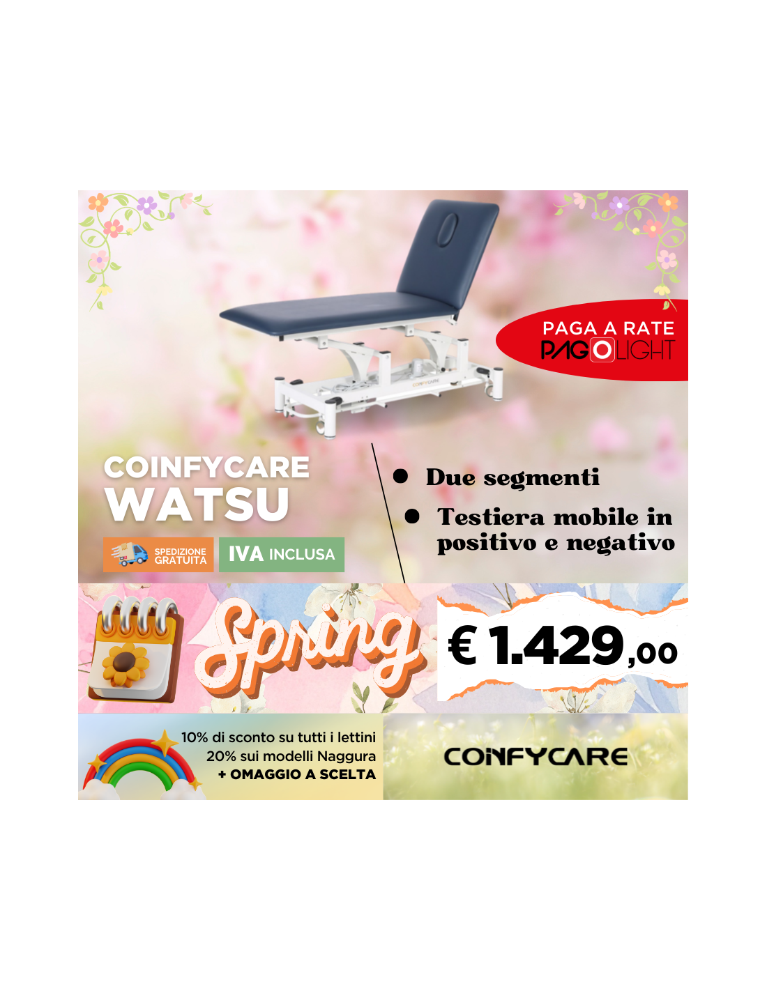 Lettino elettrico a due sezioni Coinfycare Watsu
