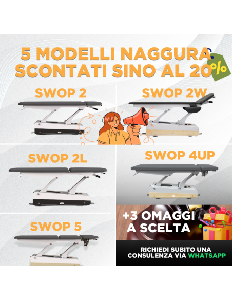 Naggura è sempre pronta a rinnovarsi e oggi presenta la sua nuova generazione di lettini di fisioterapia ed osteopatia che risaltano grazie al design completamente innovativo e alle soluzioni tecniche ottimizzate.